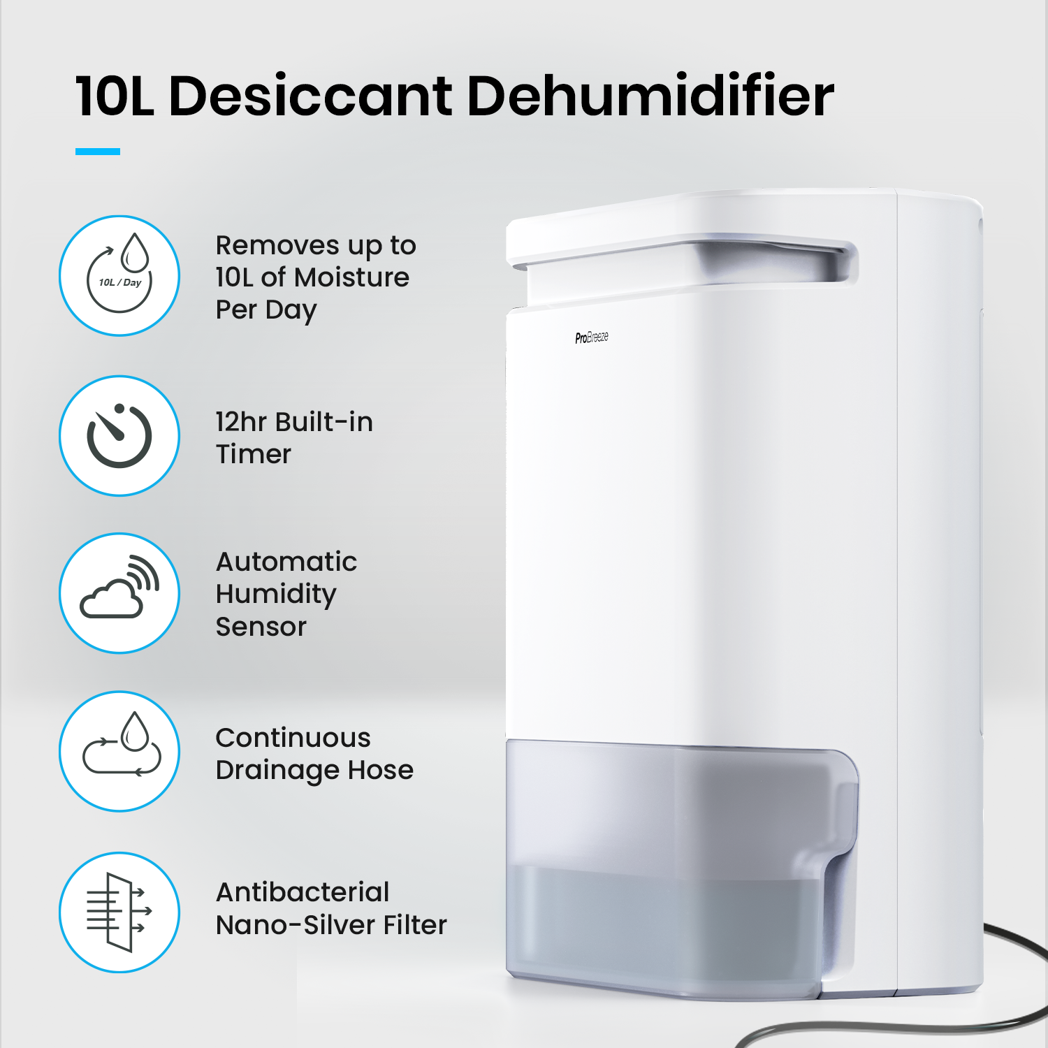 - Energy Efficiency: All Pro Breeze dehumidifiers are energy-efficient, with many models featuring an automatic shut-off when the desired humidity level is reached to conserve energy. However, the cost of these energy-efficient models can vary. The 10L Desiccant Dehumidifier costs as little as 18 p/hour to run.