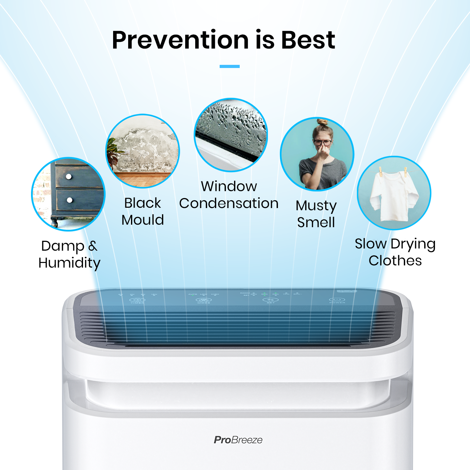 - Less Frequent Emptying: The large 3L water tank collects up to 10 litres of water daily.