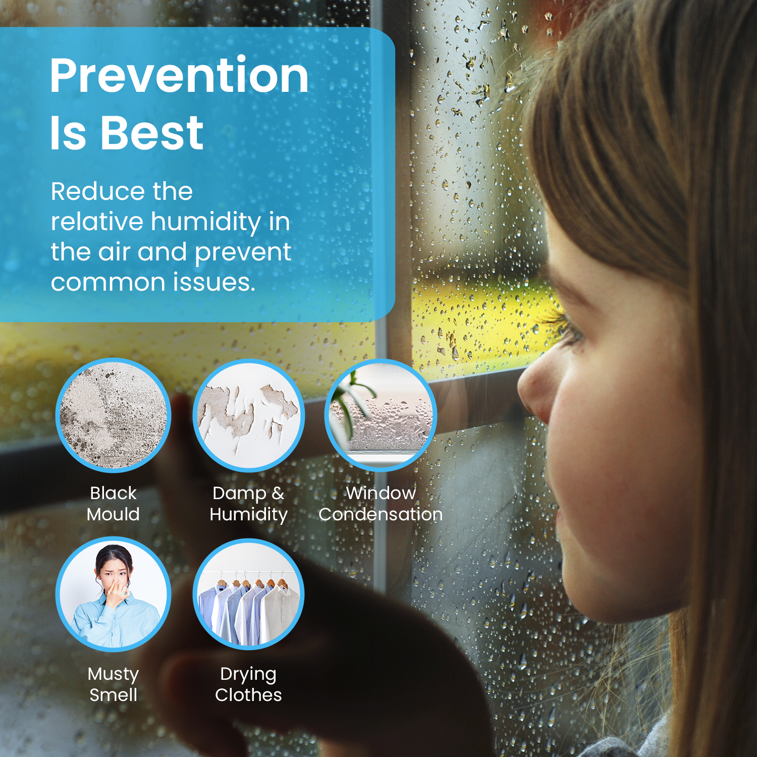 - Extended Use, Minimal Effort: Features a large 5.5L tank and removes up to 20 litres of moisture daily.