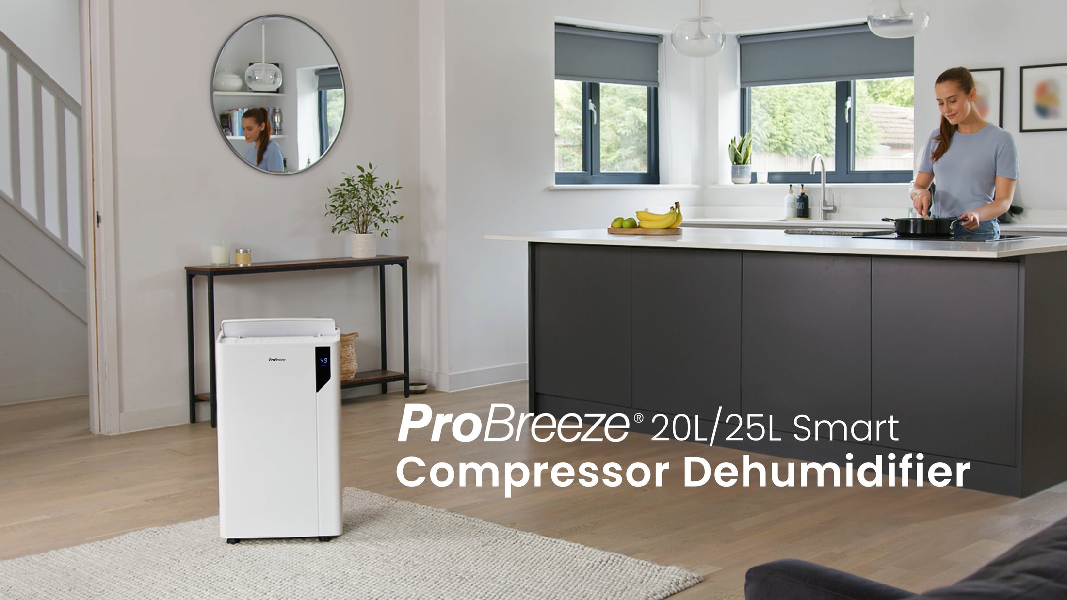 Meet your home’s personal humidity assistant. Our 20L Smart Premium Dehumidifier swiftly tackles mould, musty smells, window condensation, and stuffy air, creating a healthier environment for your family. Whether laundry drying or maintaining well-balanced air quality in your child’s bedroom, choose from 5 operating modes to match your exact needs. The oscillating louvre distributes air evenly throughout the room, so no damp corners are left behind.