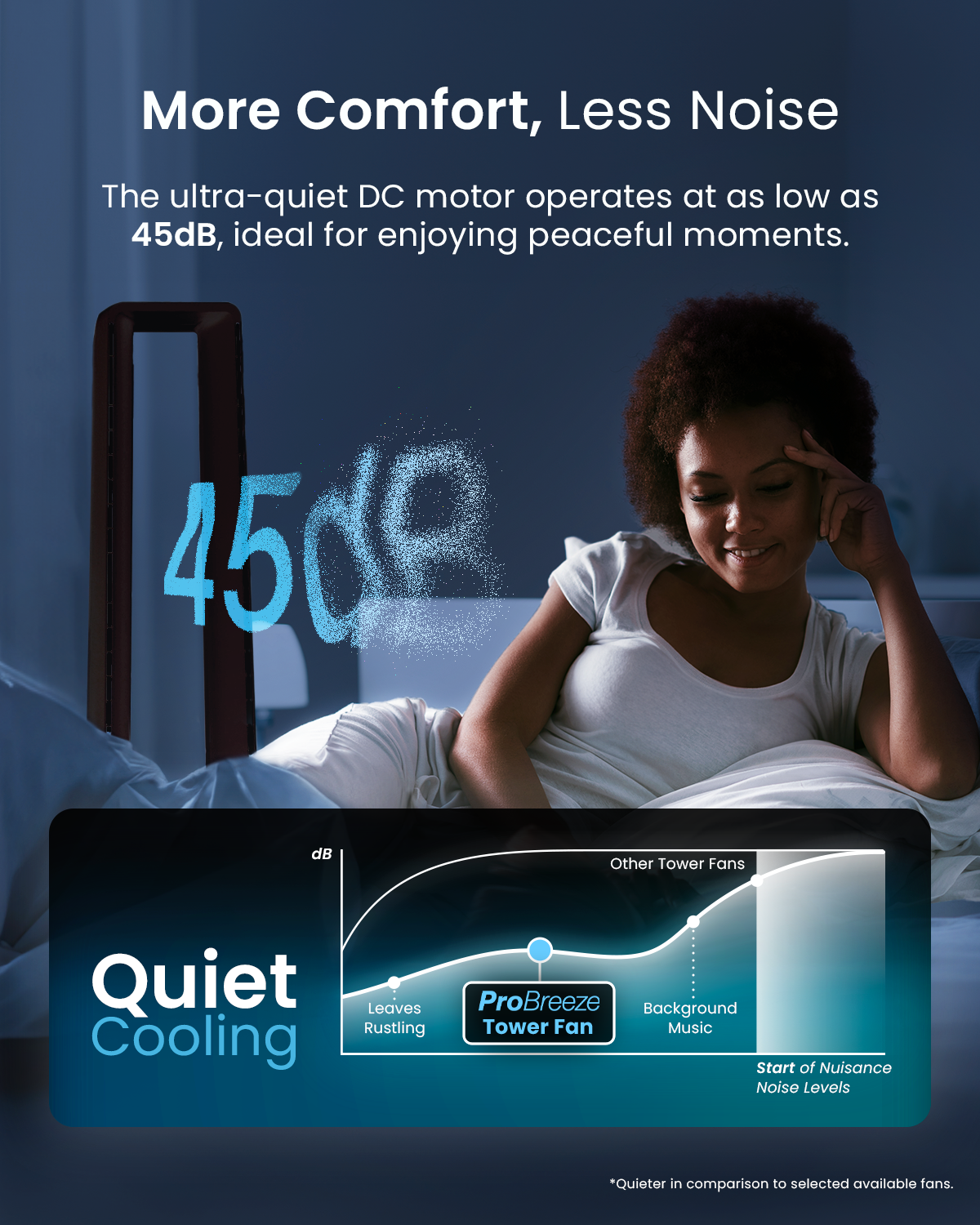 - Wide-Room Coverage: At the tap of a button, this fan automatically oscillates 60° from the side to cool large areas quicker.