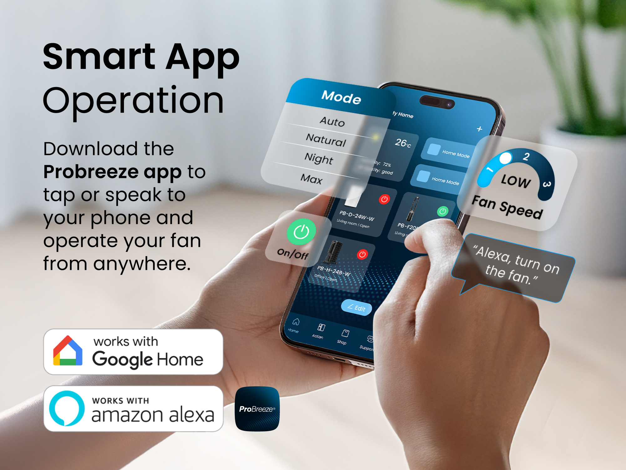 - Smart Cooling, Hands-Free: Adjust settings via the Pro Breeze smart app or voice control with Alexa & Google Home.