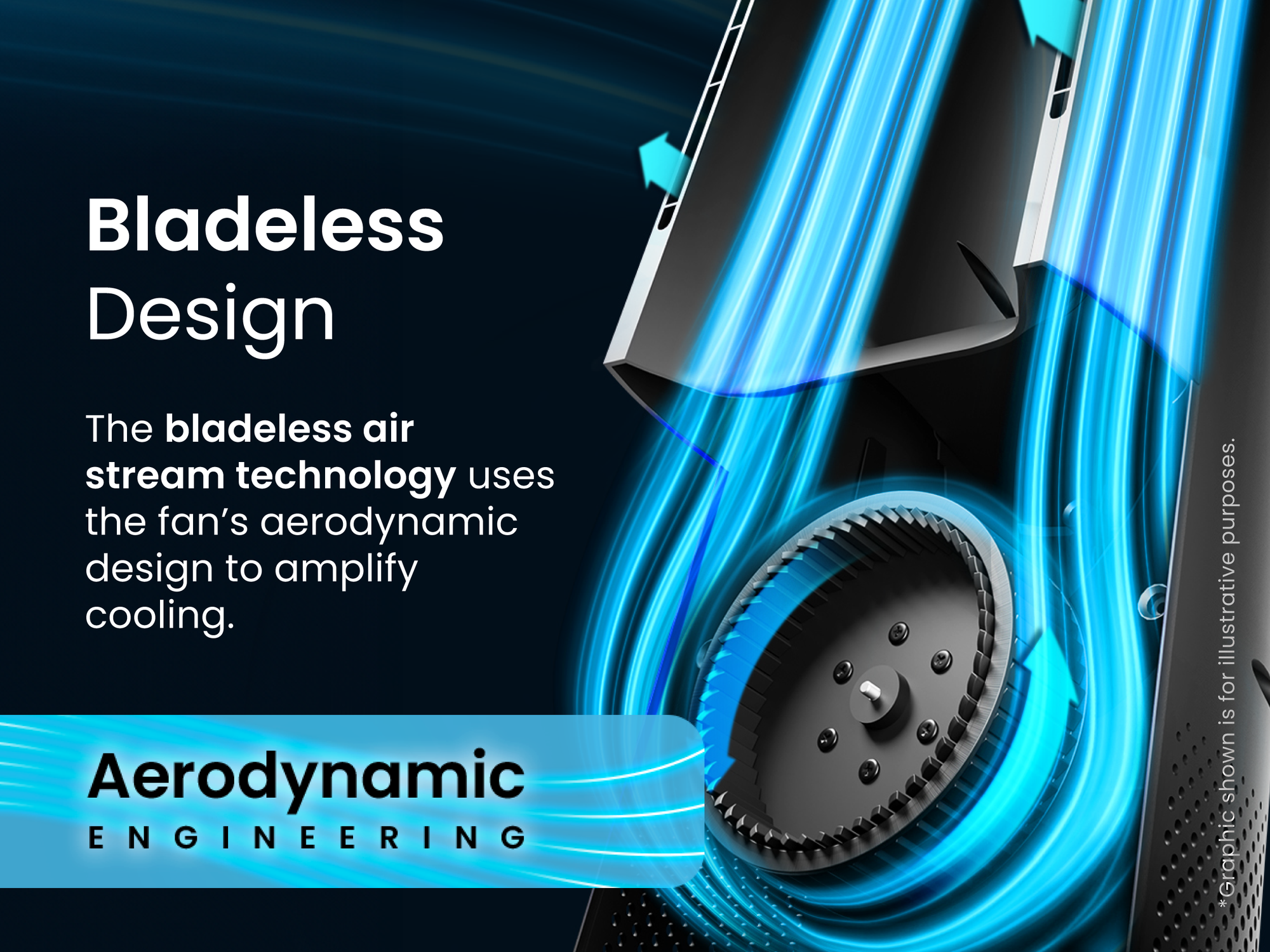 The 40” Smart Bladeless Tower Fan is built for cooling large spaces with ease. Featuring Air Multiplier technology, it rapidly increases airflow while maintaining a sleek, modern design. With 6 speeds and 5 modes, it adapts to your needs, no matter your set-up. Feeling lazy? You can control it from anywhere using your smartphone, Alexa, or Google Home. Don’t worry about keeping it running all day – its bladeless design is safe around children and pets.