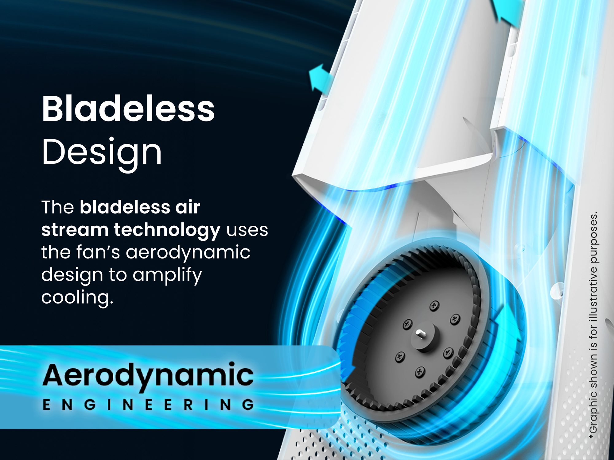The 40” Smart Bladeless Tower Fan is built for cooling large spaces with ease. Featuring Air Multiplier technology, it rapidly increases airflow while maintaining a sleek, modern design. With 6 speeds and 5 modes, it adapts to your needs, no matter your set-up. Feeling lazy? You can control it from anywhere using your smartphone, Alexa, or Google Home. Don’t worry about keeping it running all day – its bladeless design is safe around children and pets.