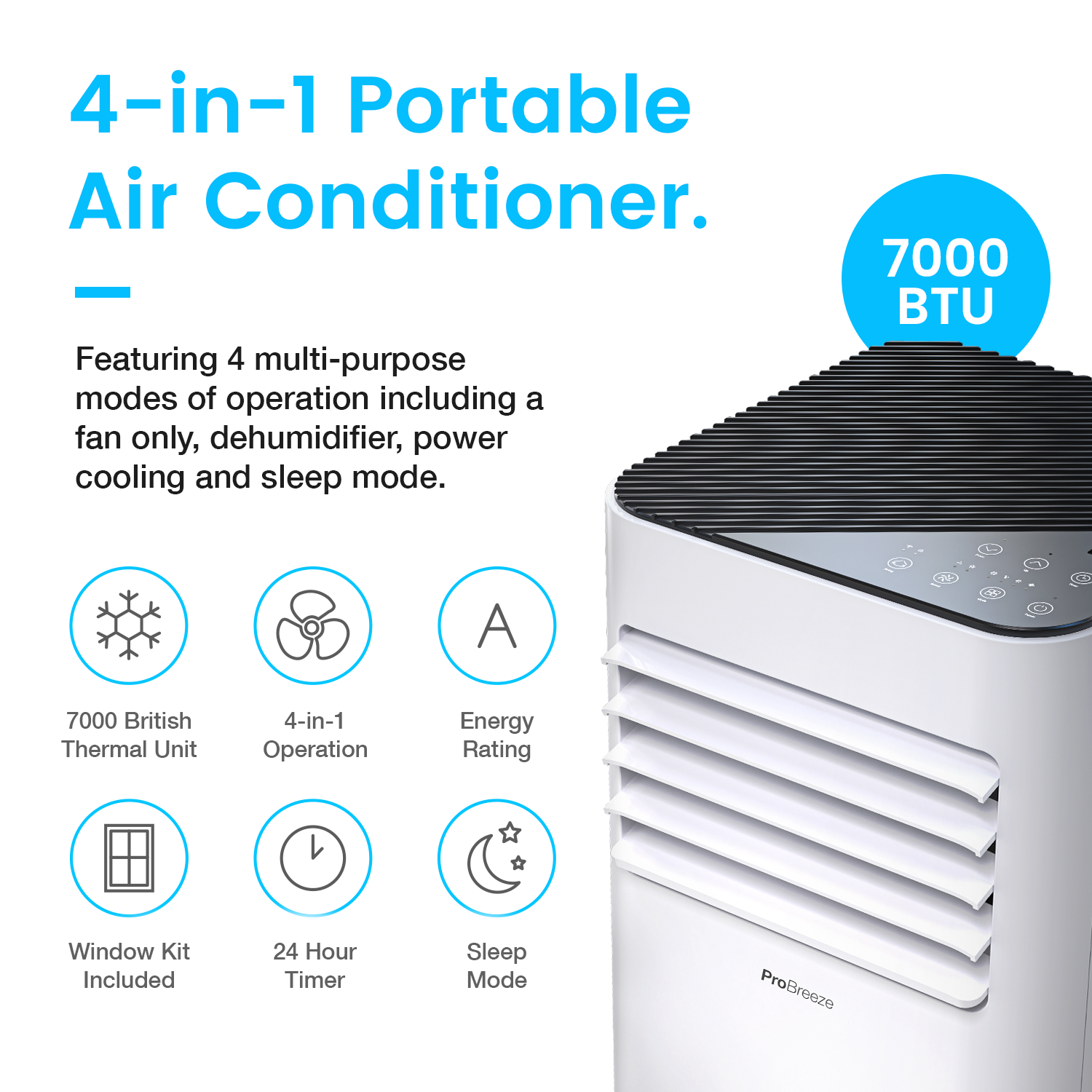 - Powerful Cooling: The 7000 BTU/h cooling capacity cools down medium-sized bedrooms, living rooms and small offices.