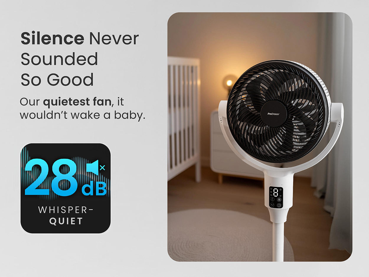 - Our Quietest Fan Yet: 87% quieter than a dishwasher, it wouldn’t wake a baby.**