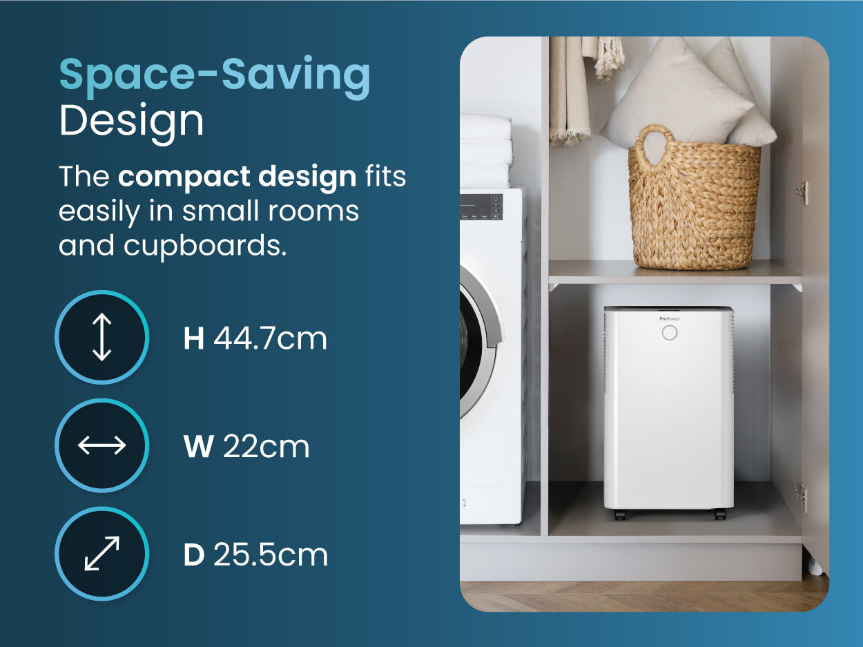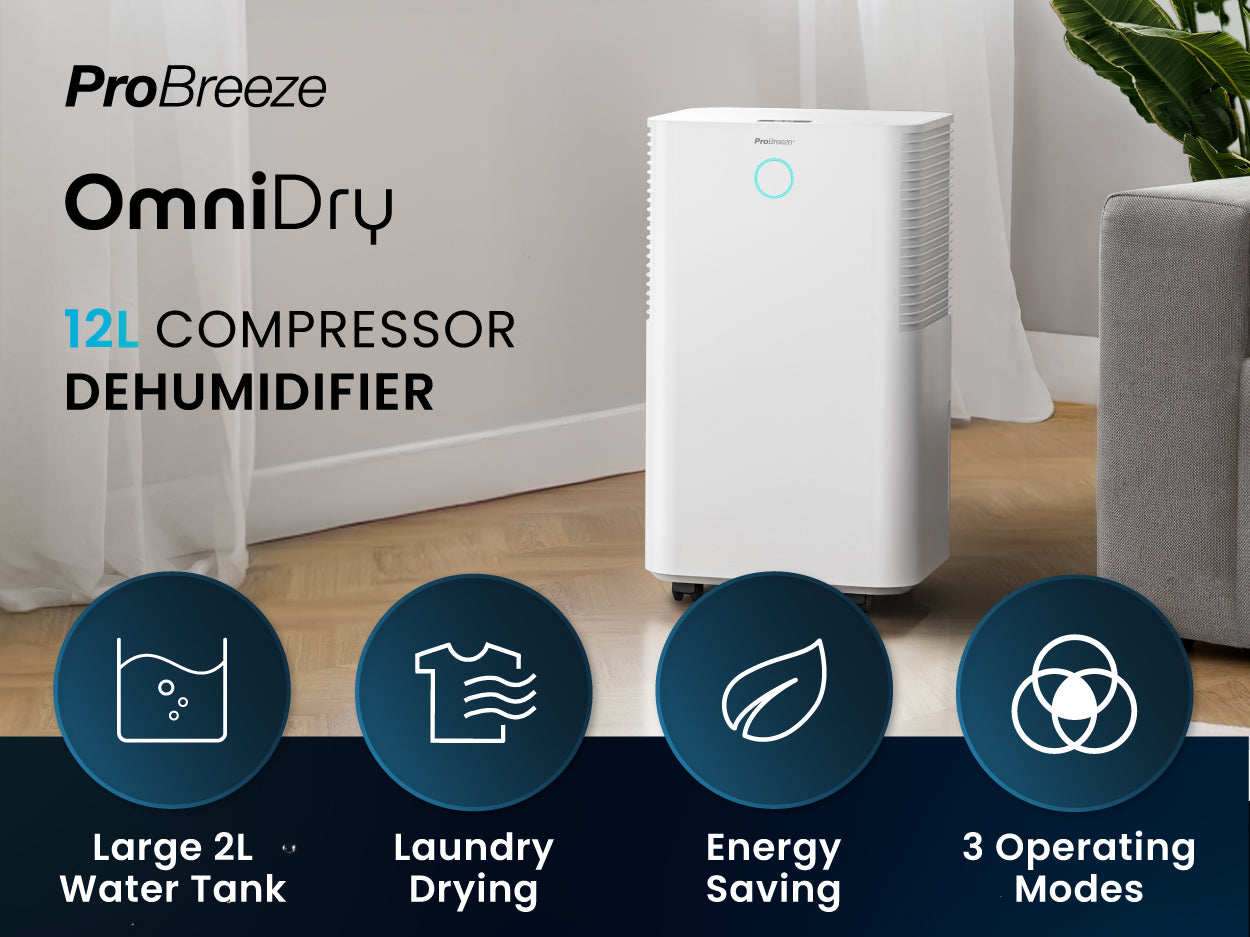 - Energy Efficiency: All Pro Breeze dehumidifiers are energy-efficient, with many models featuring an automatic shut-off when the desired humidity level is reached to conserve energy. However, the cost of these energy-efficient models can vary. The 12L Dehumidifier costs as little as 4 p/hour to run.