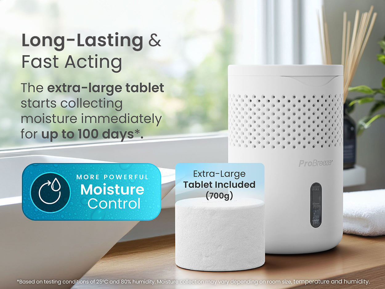 - Long-Lasting: The extra-large tablet (700g) absorbs moisture for 100 days*, keeping humidity under control.