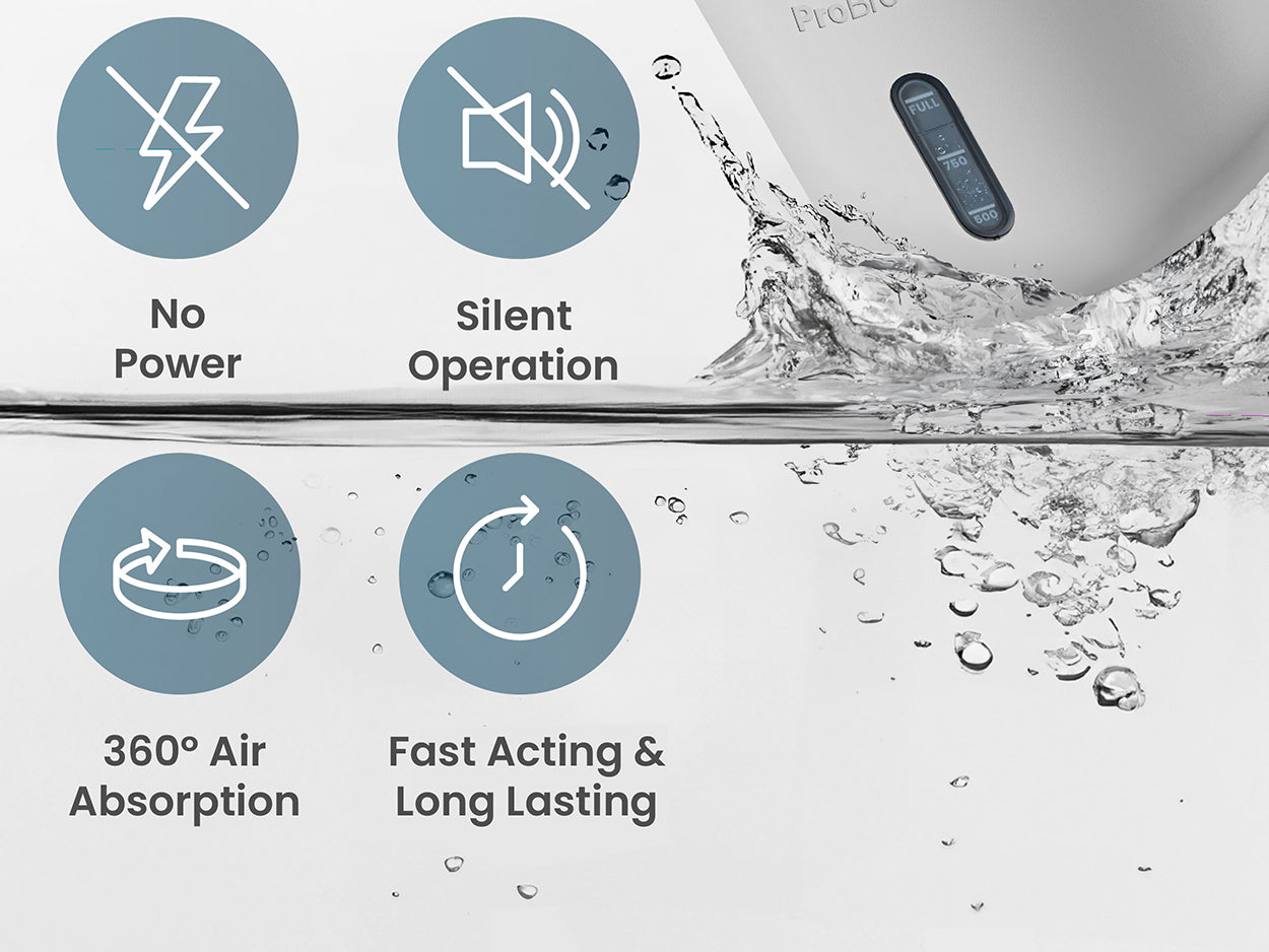 - No power, no noise: Requires no electricity to run, meaning just discreet, continuous moisture control.