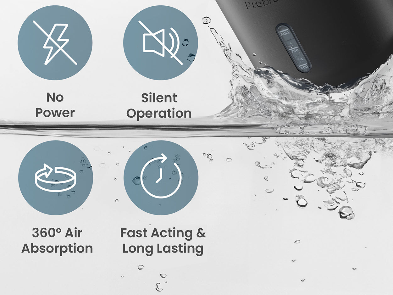 - No power, no noise: Requires no electricity to run, meaning just discreet, continuous moisture control.