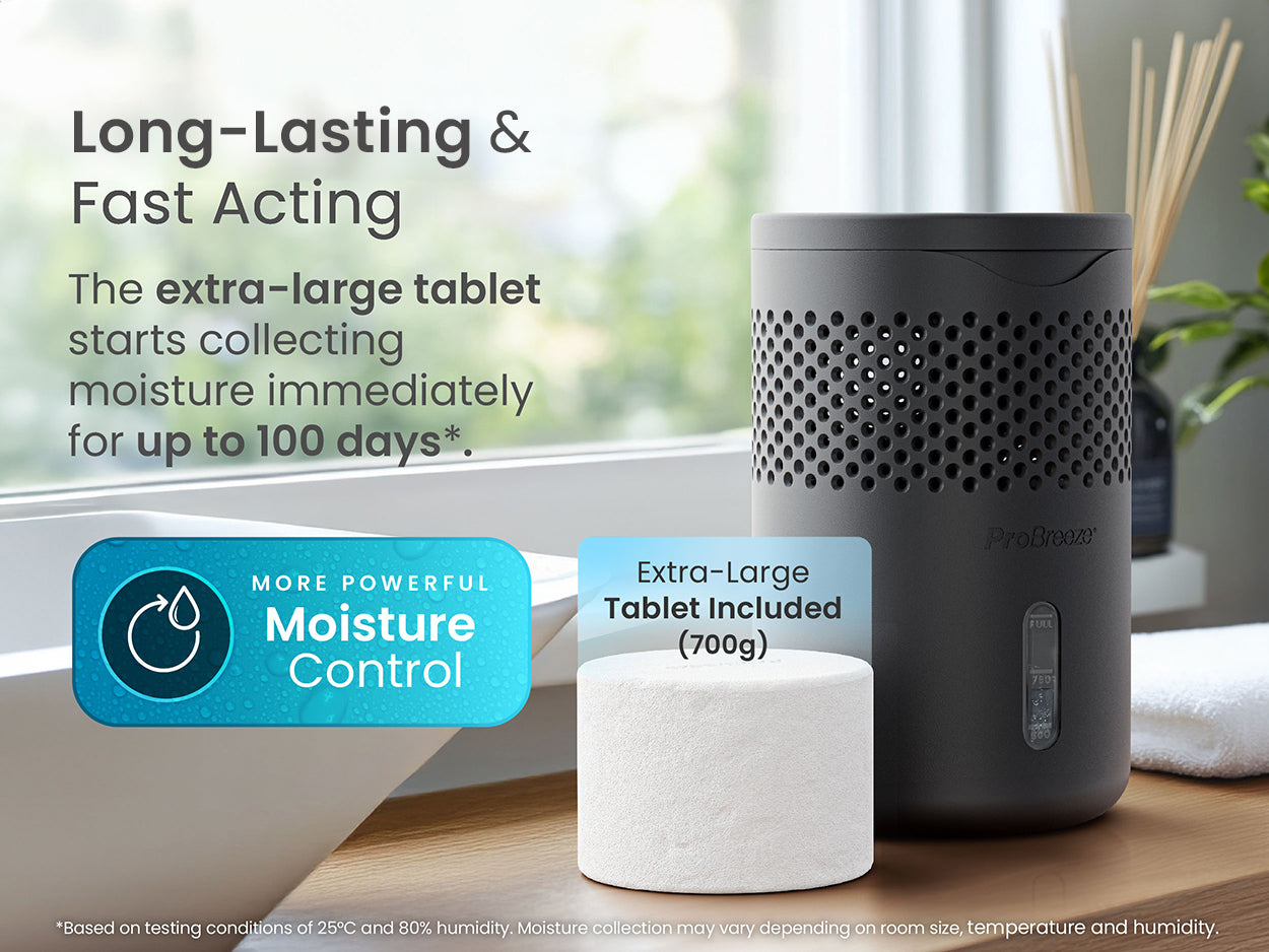 - Long-Lasting: The extra-large tablet (700g) absorbs moisture for 100 days*, keeping humidity under control.