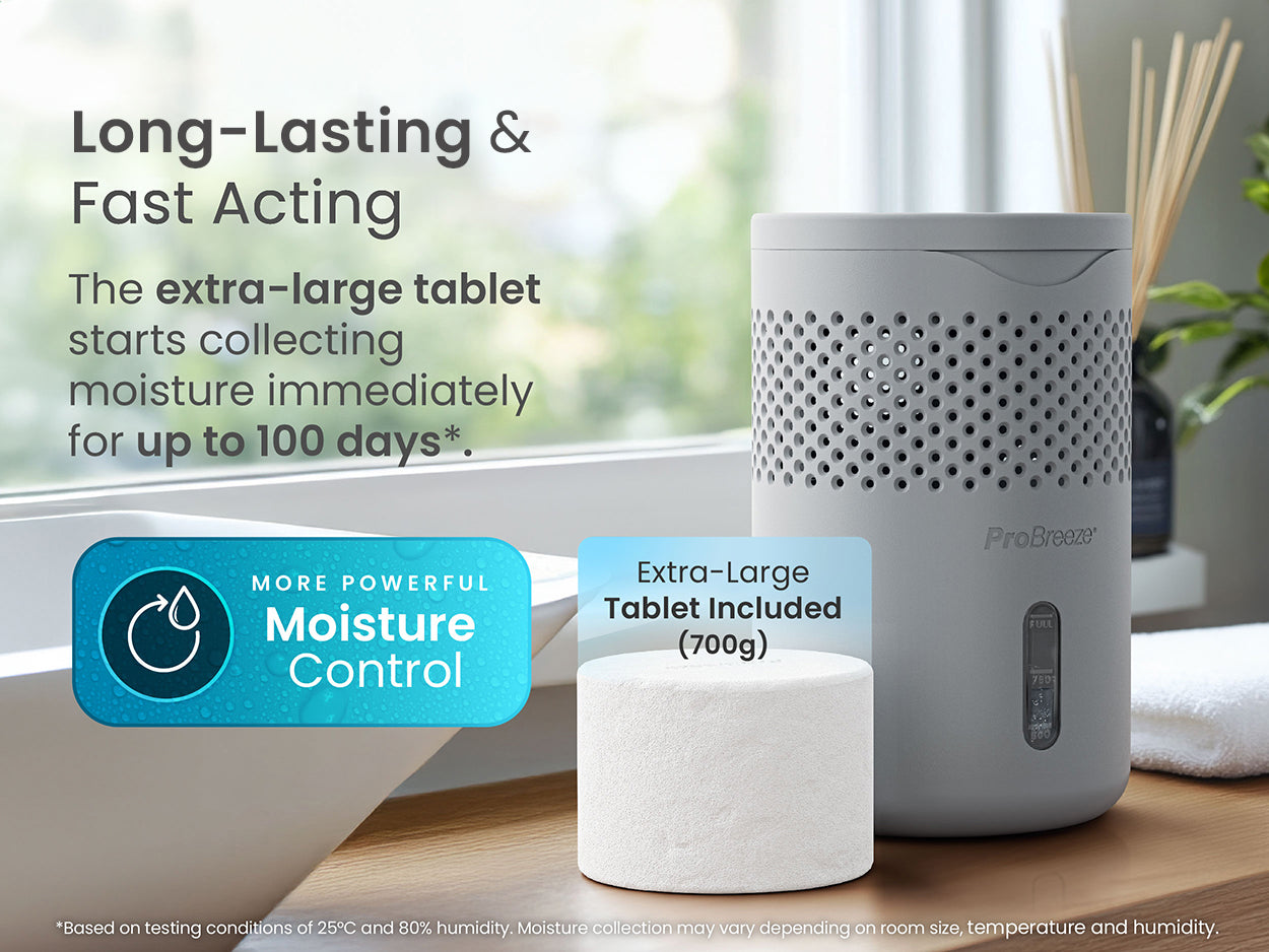 - Long-Lasting: The extra-large tablet (700g) absorbs moisture for 100 days*, keeping humidity under control.