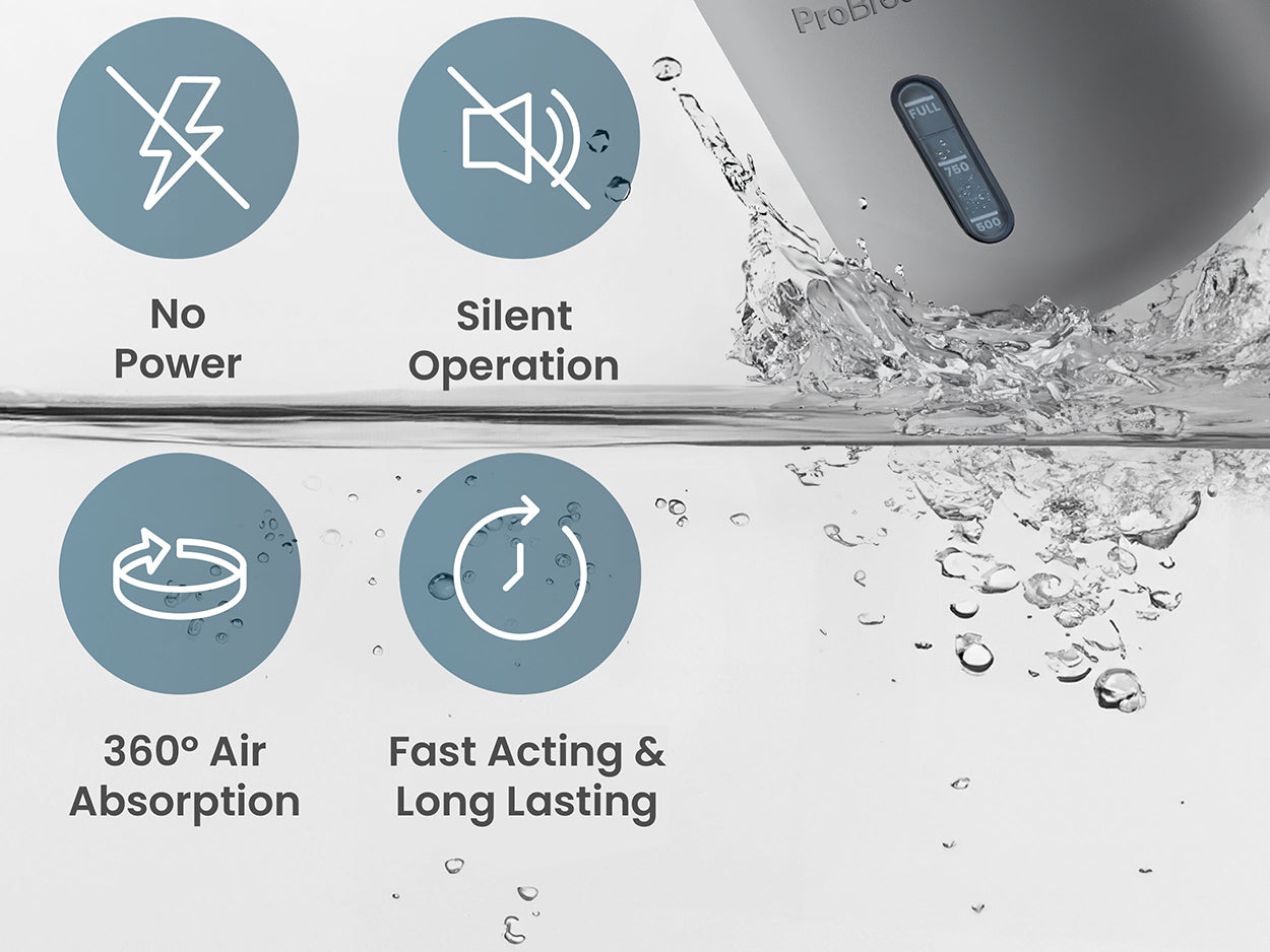 - No power, no noise: Requires no electricity to run, meaning just discreet, continuous moisture control.
