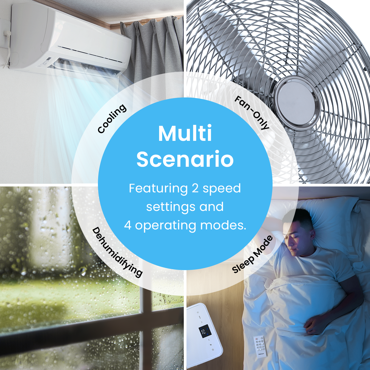 - 3 Functions, 1 Solution: Meet all your needs with air cooling, dehumidifying, and fan-only mode, all in one product.