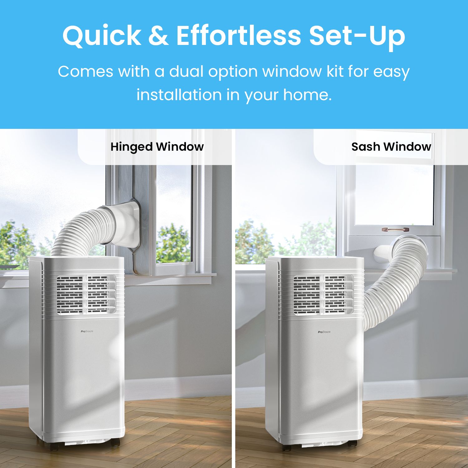 - Quick & Easy Set-Up: Two easy-to-install window venting kits for either slide or hinged windows are included.